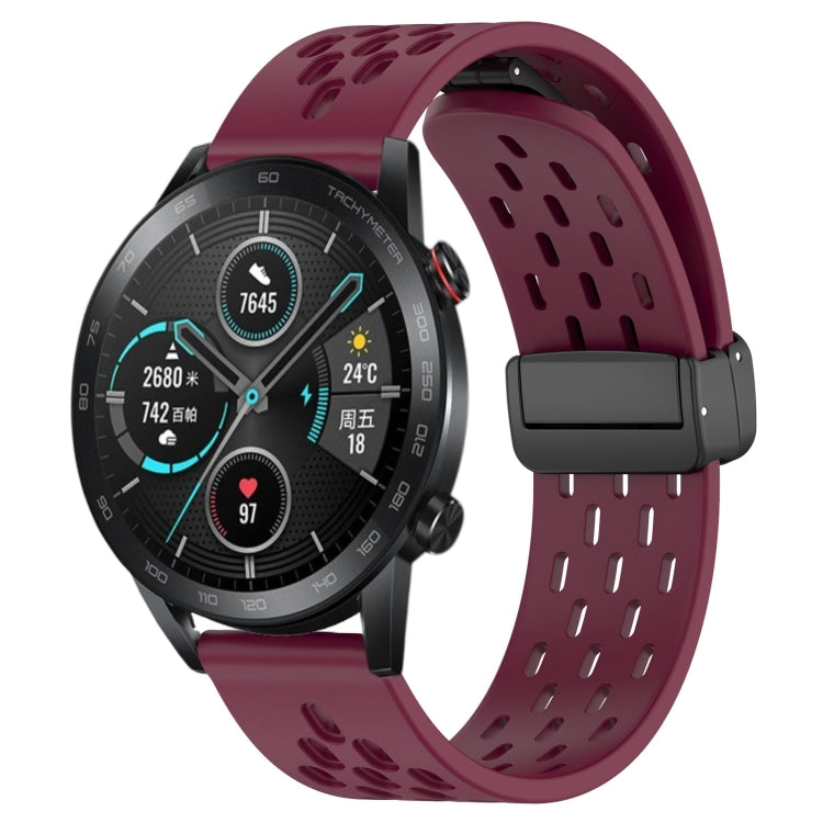 Correa de Reloj silicona para Honor Magicwatch2 42mm 20mm con cierre magnético plegable (Rojo Vino)
