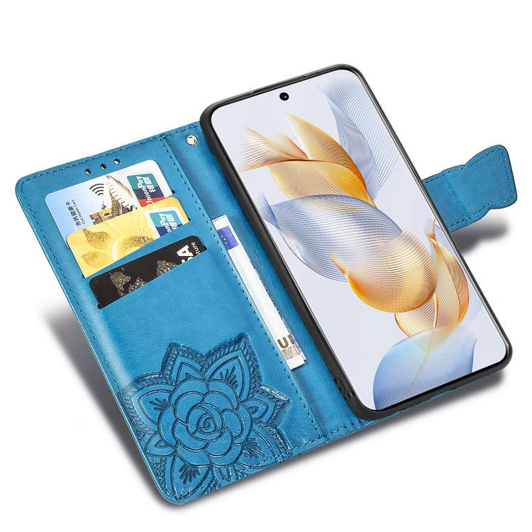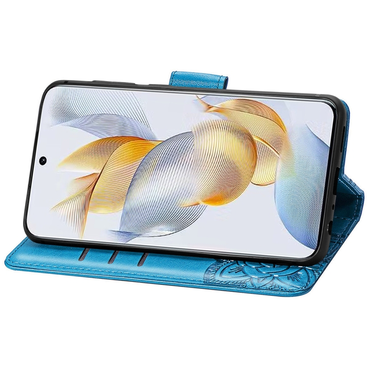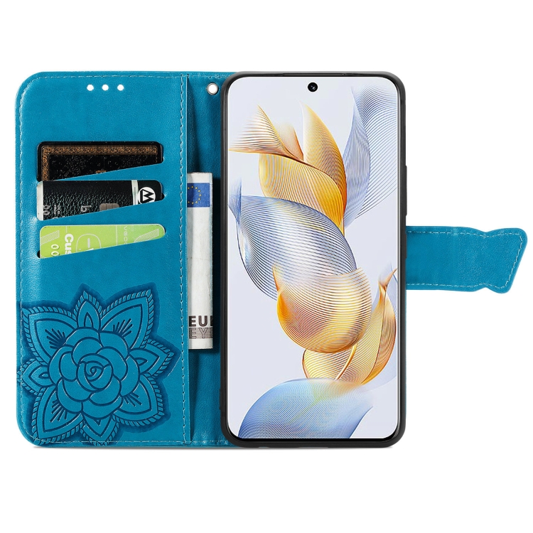 Funda para Honor Play 40C y X5 Plus de Cuero con Relieve de Flor y Mariposa (Azul)