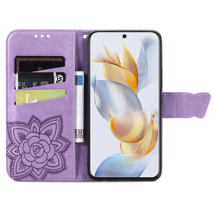 Funda para Honor Play 40C y X5 Plus de Cuero con Relieve Flor y Mariposa (Lavanda)