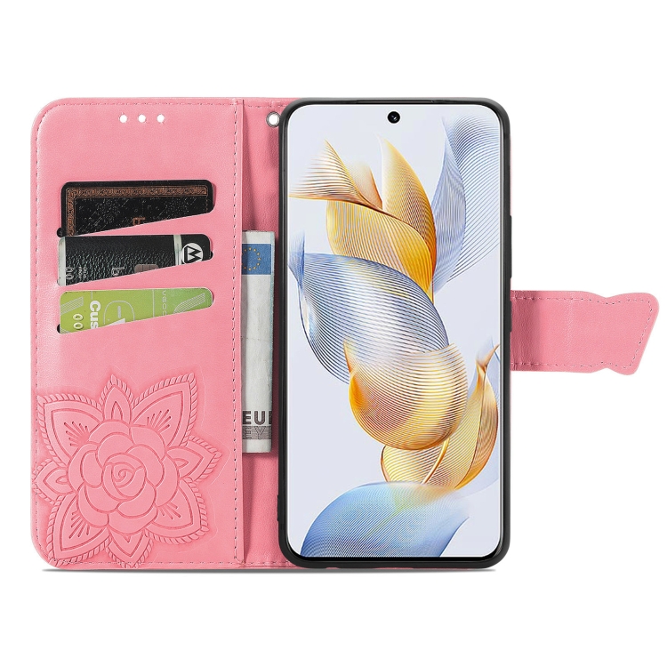 Funda para Honor Play 40C / X5 Plus de Cuero con Relieve Flor y Mariposa (Rosa)
