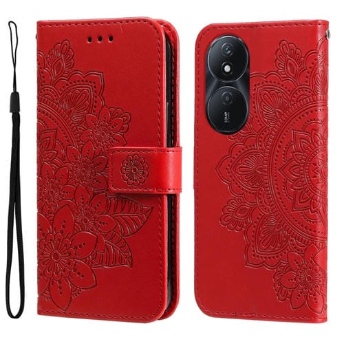 Funda para Honor Play 50 Plus de Cuero con Estampado Flores de 7 Pétalos (Rojo)