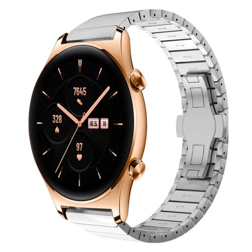 Correa de Aleación para Honor Watch GS 3 con Hebilla de Mariposa y Pintura de Una Cuenta 22mm (Plata)