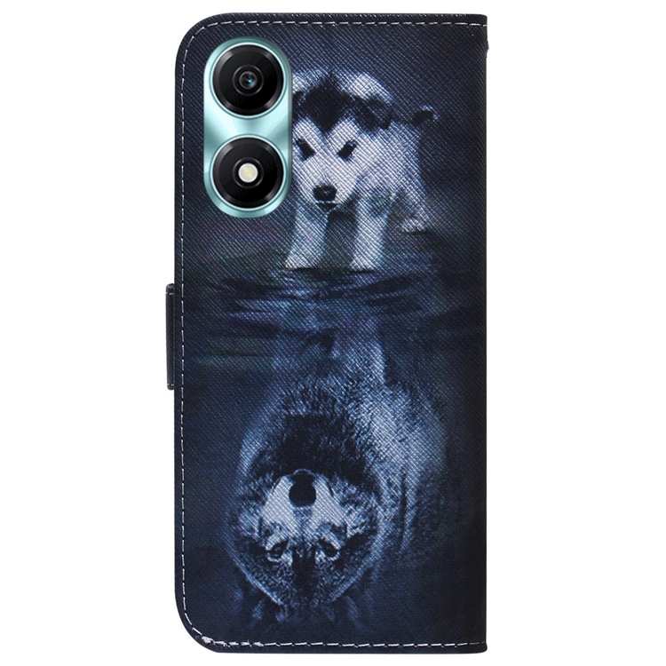Funda de Cuero con Tapa para Honor X5 Plus y Play 40C con Dibujo Coloreado (Lobo y Perro)