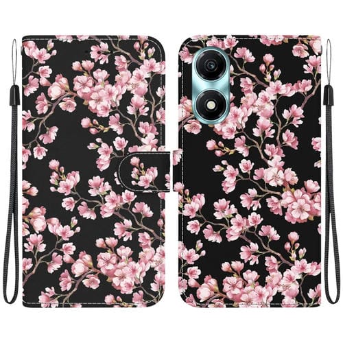 Funda para Honor X5 Plus y Play 40C de Cuero con Dibujo Coloreado y Textura de Cristal (Flor de Ciruelo)