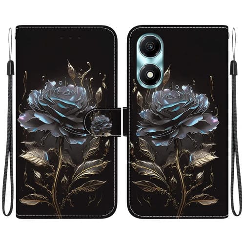 Funda para Honor X5 Plus y Play 40C de Cuero con Dibujo Coloreado y Textura de Cristal (Rosa Negra)