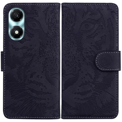 Funda para Honor X5 Plus y Play 40C de Cuero con Tapa y Patrón en Relieve de Tigre (Negro)