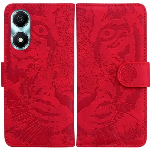 Funda para Honor X5 Plus y Play 40C de Cuero con Tapa y Patrón en Relieve de Tigre (Rojo)