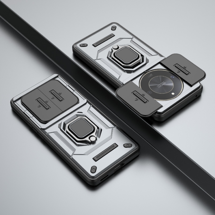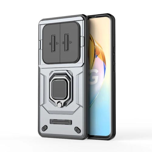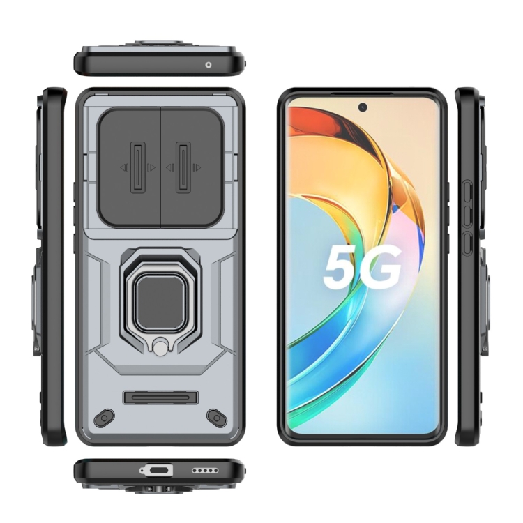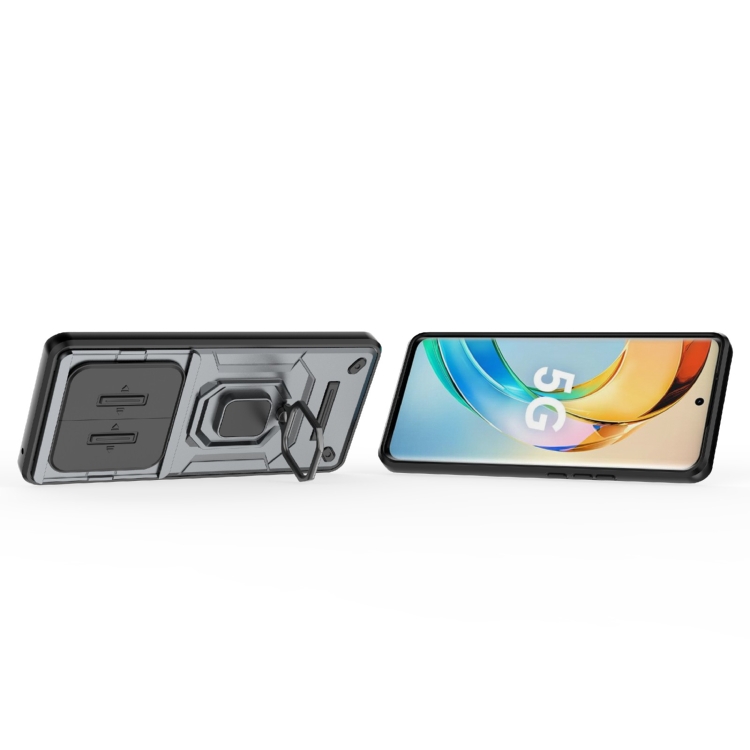Funda para Honor X50 5G con Sliding Camshield TPU + PC a Prueba de Golpes con Soporte (Gris)