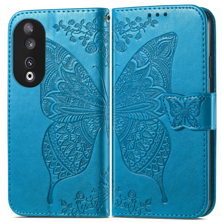 Funda para Honor X50I de Cuero con Relieve de Flor y Mariposa (Azul)