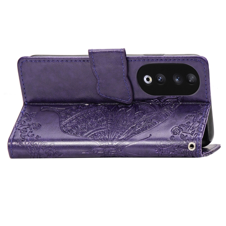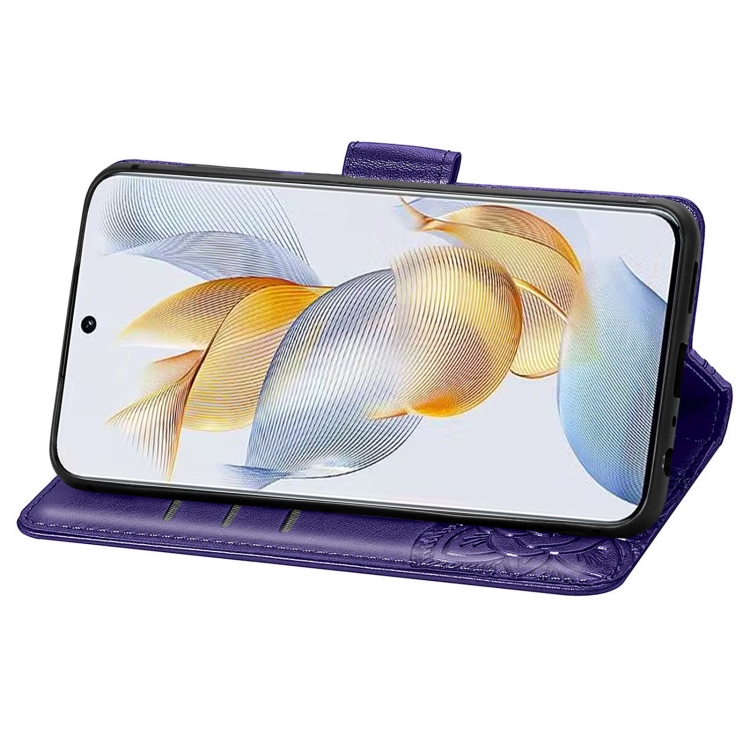 Funda de Cuero para Honor X50I con Relieve Flor y Mariposa (Púrpura)