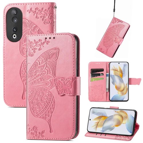 Funda para Honor X50I de Cuero con Relieve de Flor y Mariposa (Rosa)
