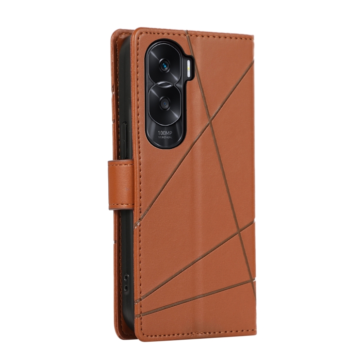 Funda para Honor X50I PU con Línea en Relieve y Textura de Cuero Genuino (Marrón)