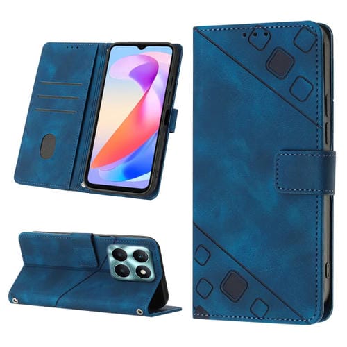 Funda de Cuero con Relieve para Teléfono Honor X6A (Azul)