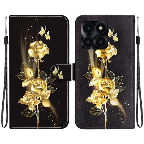 Funda para Honor X6A de Cuero con Dibujo Coloreado y Textura de Cristal (Mariposa Dorada Rosa)