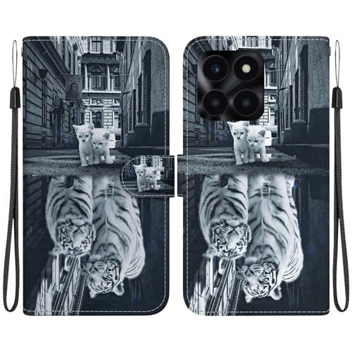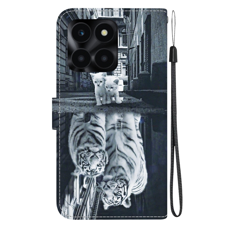 Funda para teléfono Honor X6A de cuero con dibujo coloreado y textura de cristal (Reflejo de Tigre Gato)