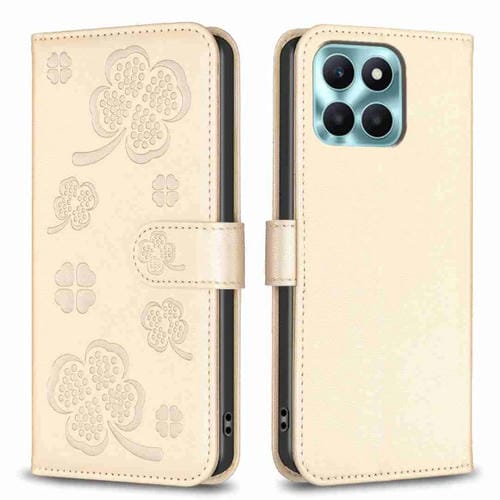 Funda para Honor X6A de Cuero con Relieve de Cuatro Hojas (Dorado)