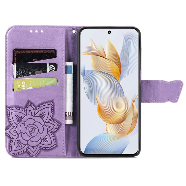 Funda para Honor X6A de Cuero con Relieve Flor de Amor y Mariposa (Lavanda)
