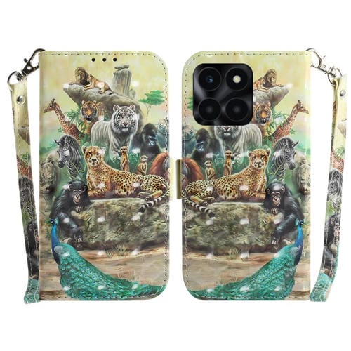 Funda para Honor X6A de Cuero con Tapa Horizontal y Diseño 3D (Zoo)