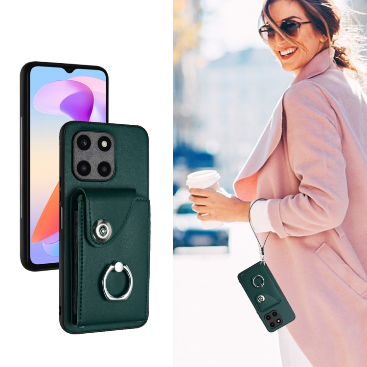 Funda para Honor X6A Global con Organ Card Bag, Ring Holder y Cordón (Verde)