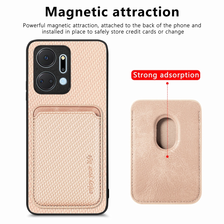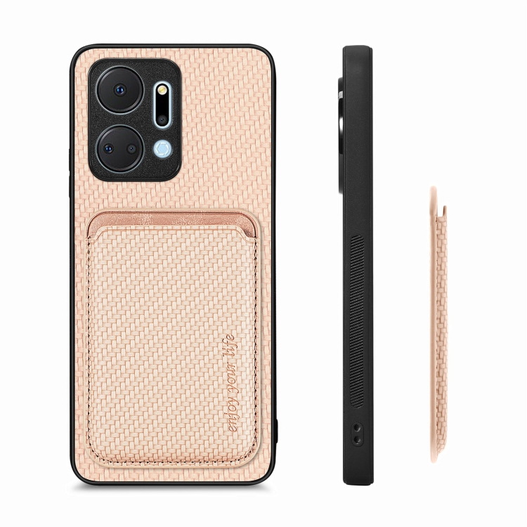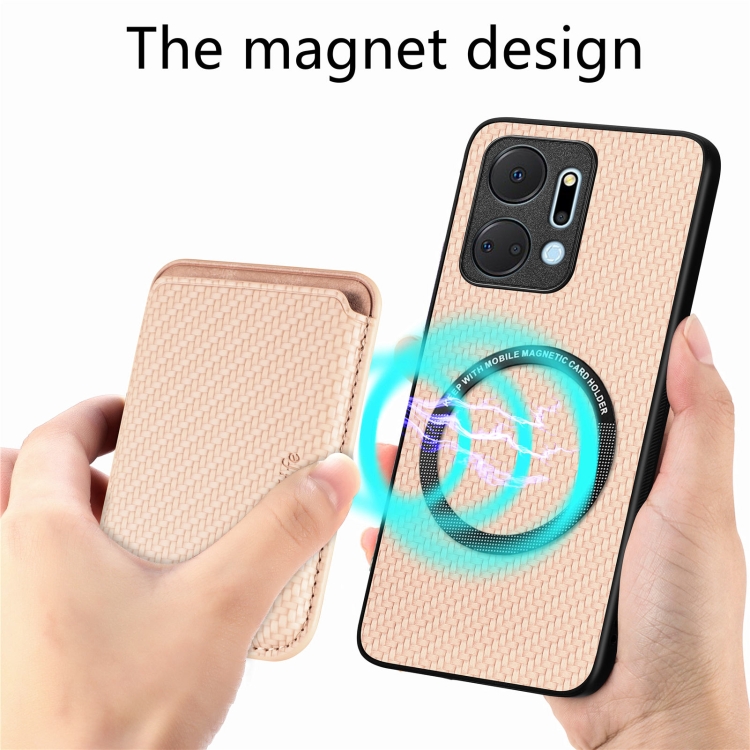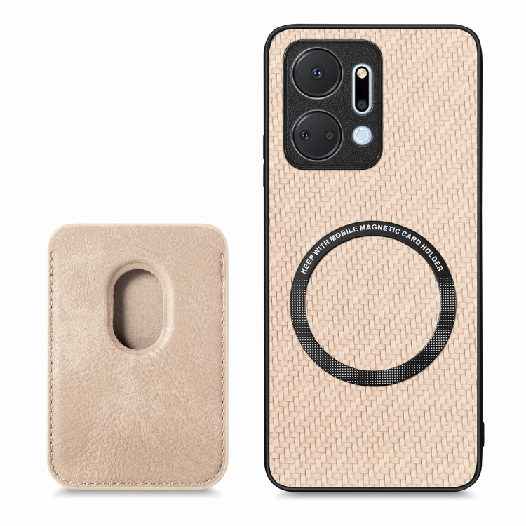 Funda Magnética para Honor X7A con Tarjeta de Cuero y Fibra de Carbono Magsafe (Caqui)