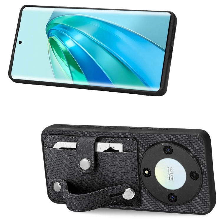 Funda para Honor X9A Muñequera Kickstand Tarjeta Monedero Contraportada con Herramienta (Negro)