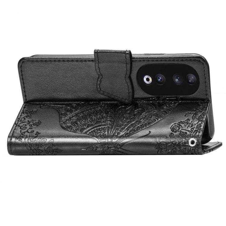 Funda para Honor X9B de Cuero con Relieve de Flor de Amor y Mariposa (Negro)