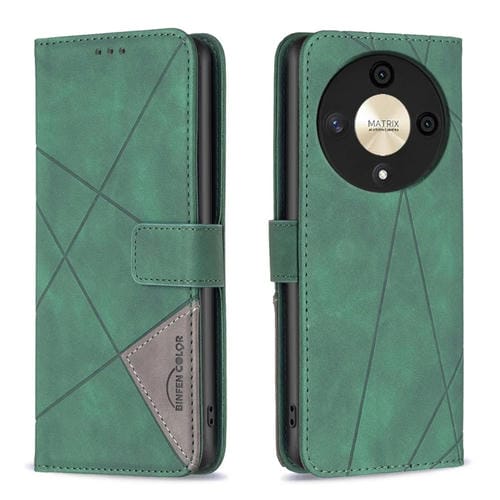 Funda para Honor X9B Magic6 Lite 5G Cuero Textura Rombo Hebilla Magnética (Verde)