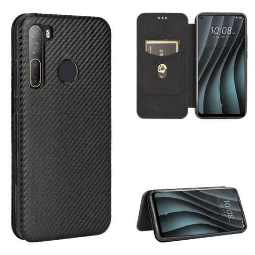 Funda para HTC Desire 20 Pro con Textura Fibra de Carbono, Tapa Magnética Horizontal TPU + PC y Cuero PU (Negro)