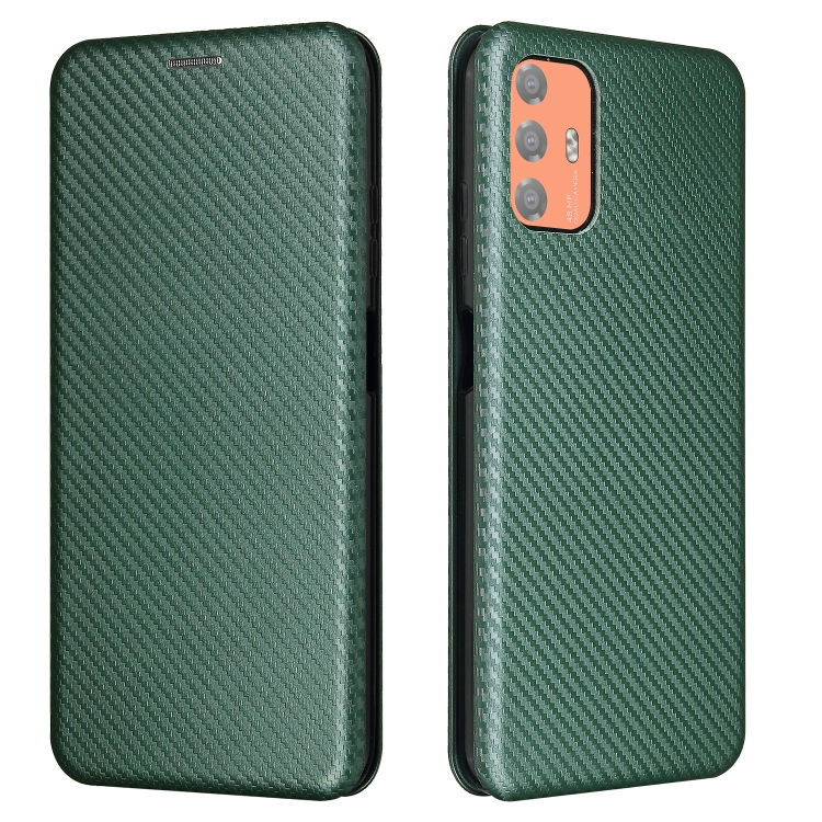 Funda para HTC Desire 21 Pro Cuero con Textura Fibra de Carbono Magnética Tapa Horizontal TPU + PC + PU (Verde)