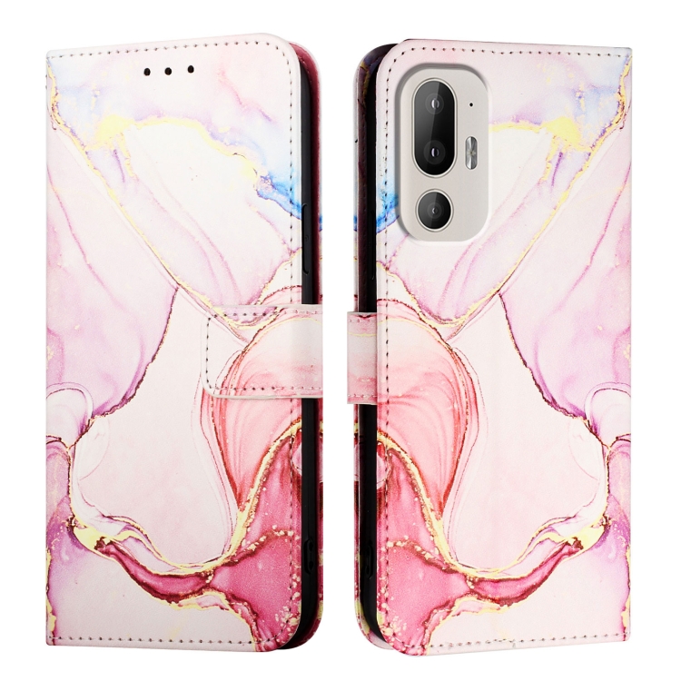 Funda de Cuero con Tapa para HTC U24 Pro Pt003 con Patrón de Mármol (Oro Rosa)