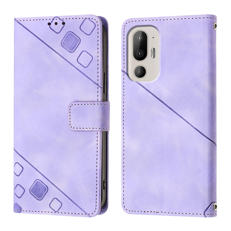 Funda de Cuero Skin Feel para HTC U24 Pro en Relieve (Púrpura Claro)