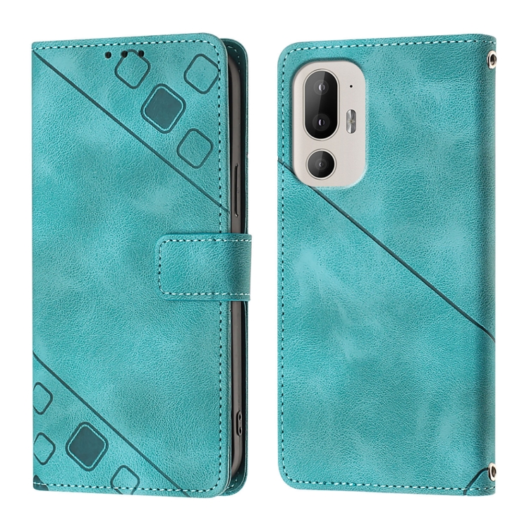 Funda de Cuero Skin Feel para HTC U24 Pro en Relieve (Verde)
