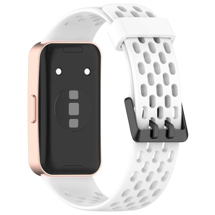 Correa de Silicona para Huawei Band 9/9 Nfc y 8/8 Nfc con Hebilla Negra Dual Estilo Agujero (Blanco)