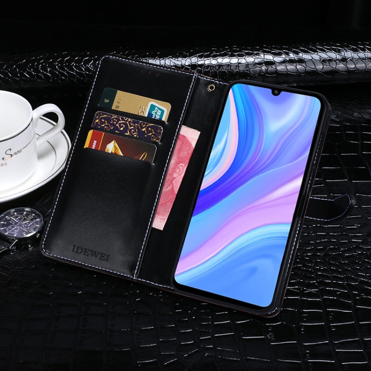 Para Huawei Enjoy 10s Funda de cuero con tapa horizontal con textura de cocodrilo idewei con soporte, ranuras para tarjetas y billetera (negro)