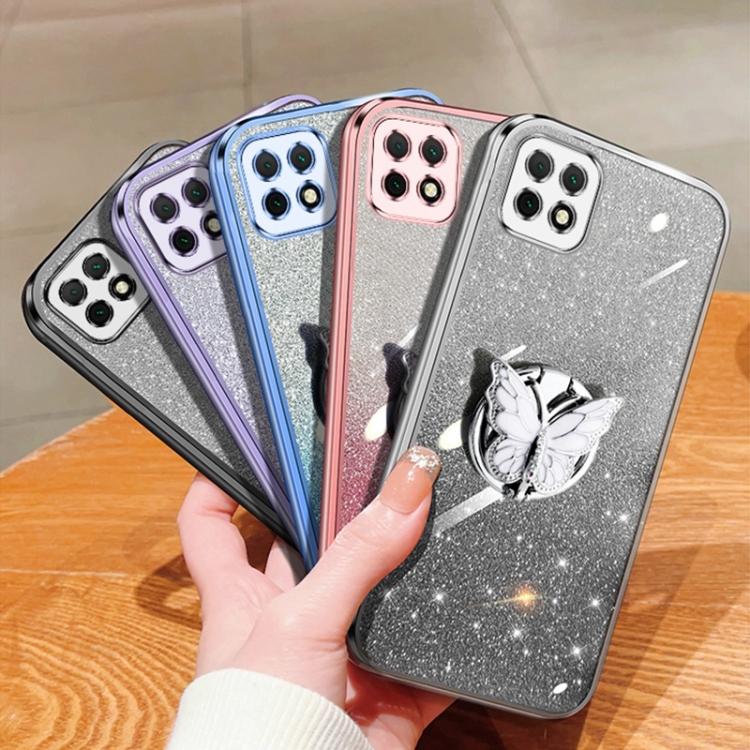 - 1x Funda TPU para Huawei Enjoy 20 con Soporte de mariposa y brillo degradado (Púrpura)