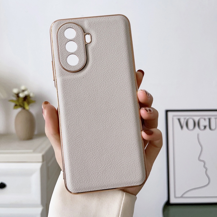 Funda de Cuero Genuino Huawei Enjoy 50 Nova Y70 Plus Nova Y70 4G Waves Series Nano Galvanoplastia (Gris)