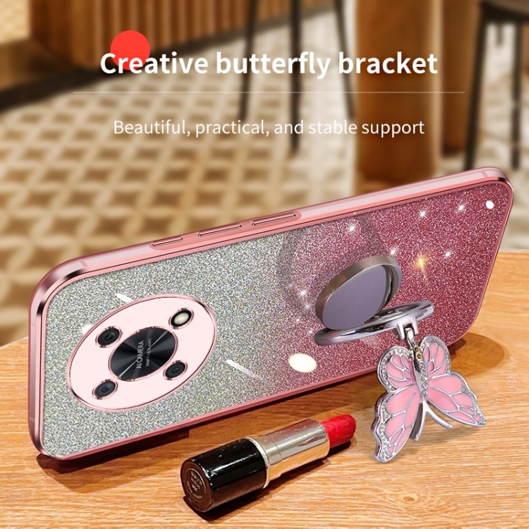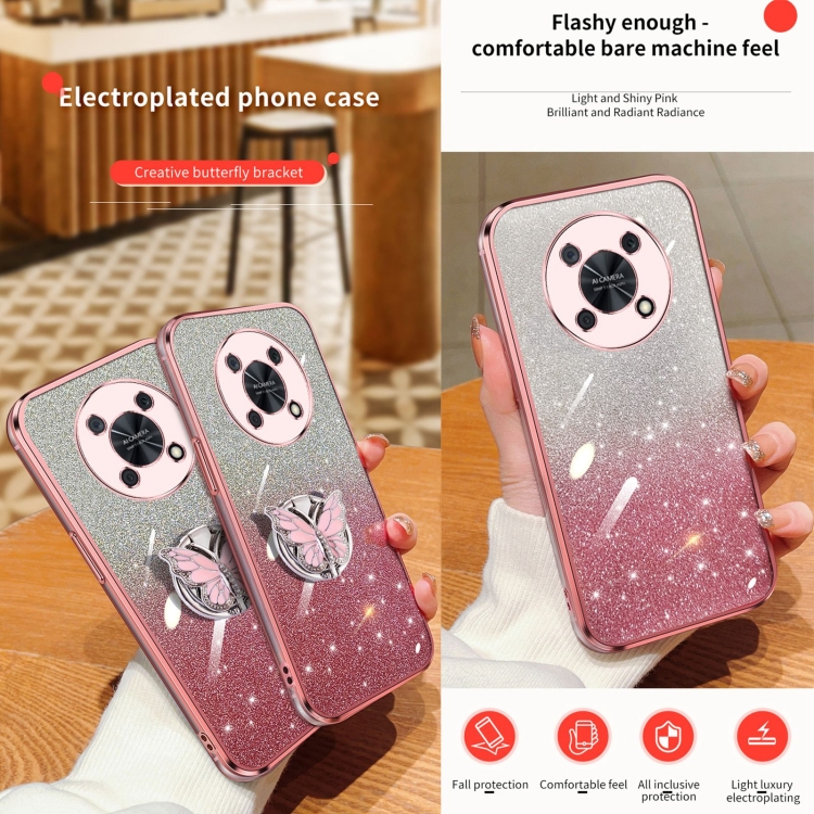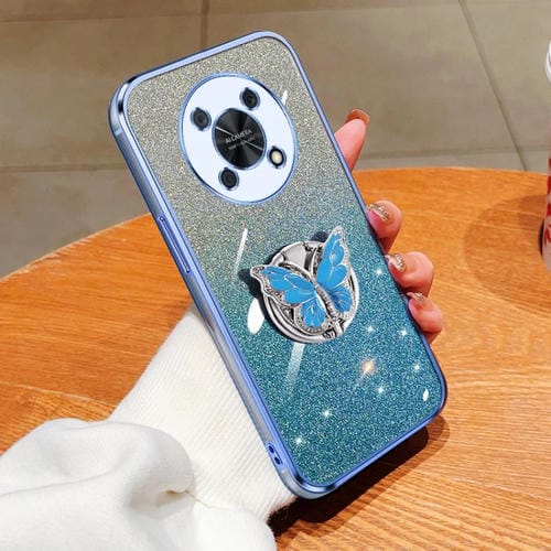 - 1x Funda TPU para Huawei Enjoy 50 Pro con Soporte de mariposa y brillo degradado (Azul Sierra)