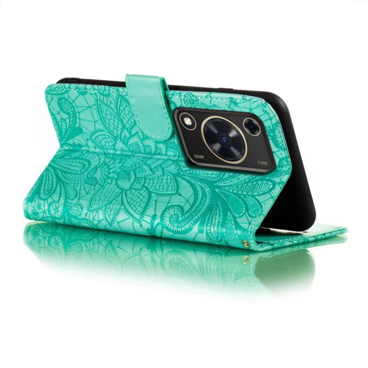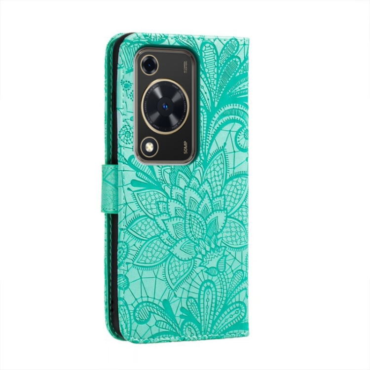 Funda de Cuero para Huawei Enjoy 70 con Tapa y Estampado de Flores de Encaje (Verde)