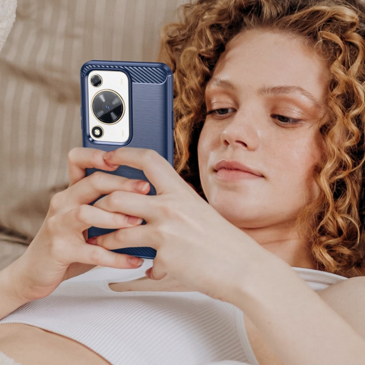 Funda TPU Fibra de Carbono para Huawei Enjoy 70 con Textura Cepillada (Azul)