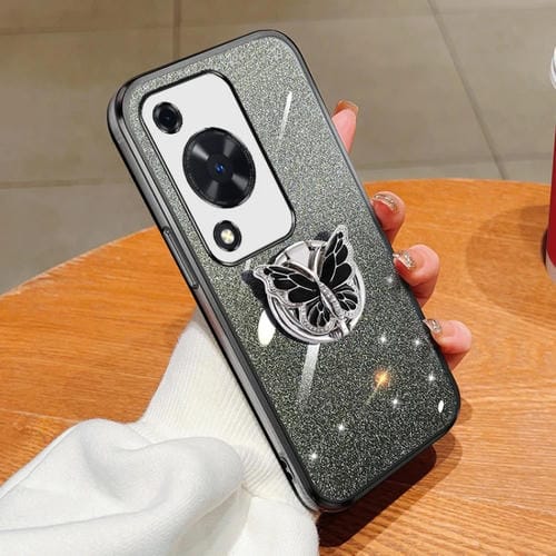 - 1x Funda TPU para Huawei Enjoy 70 con Soporte de Mariposa y Brillo Degradado (Negro)