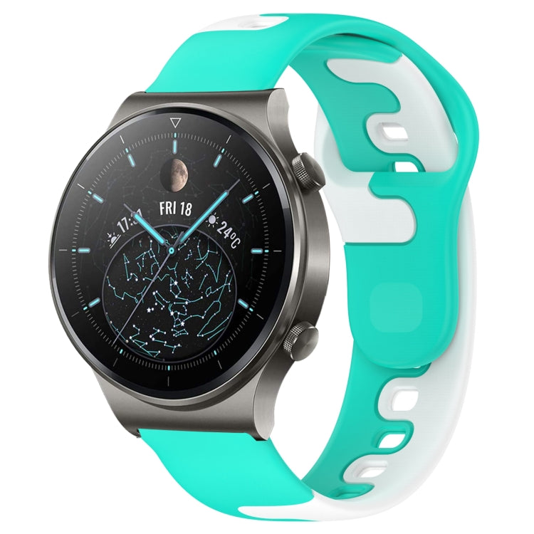 Correa de Silicona para Huawei GT2 Pro 22mm Doble Color (Cian + Blanco)