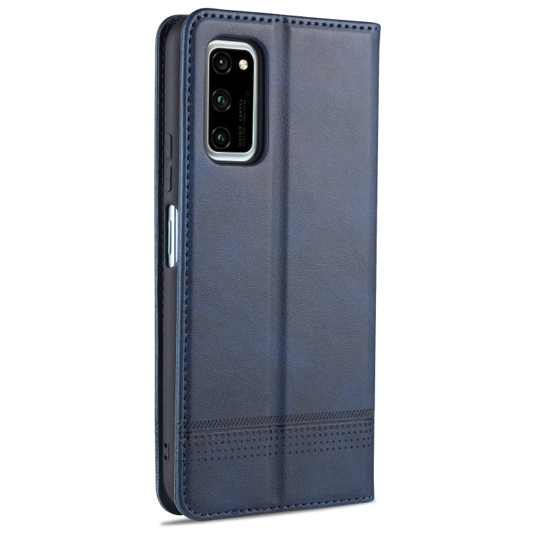Para Huawei Honor V30 AZNS Funda de cuero con tapa magnética con textura de becerro horizontal con ranuras para tarjetas, soporte y billetera (azul oscuro)