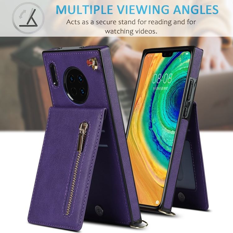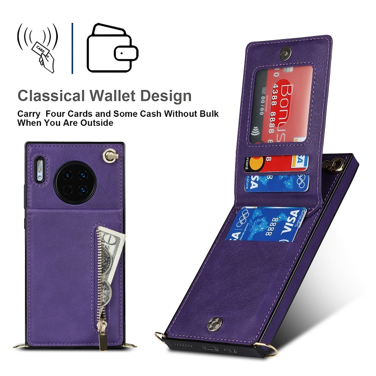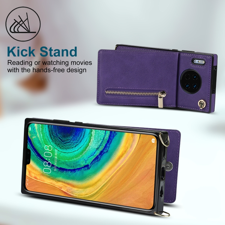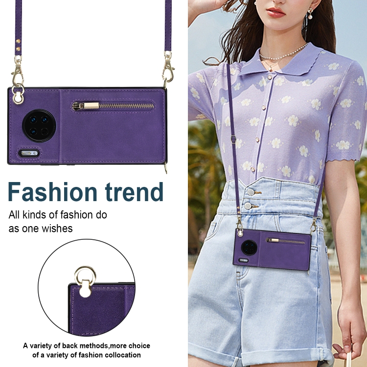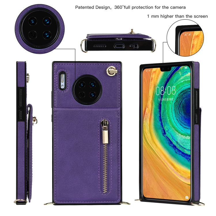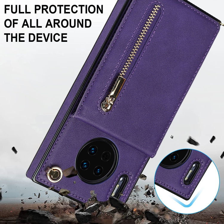 Para Huawei Mate 30 Cross-Body Zipper Square TPU + PU Funda posterior de la PU con soporte y tragamonedas de tarjetas y billetera y correa (púrpura)