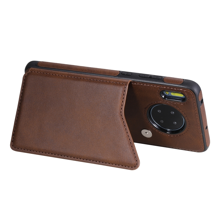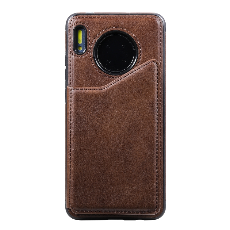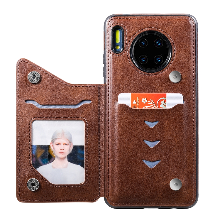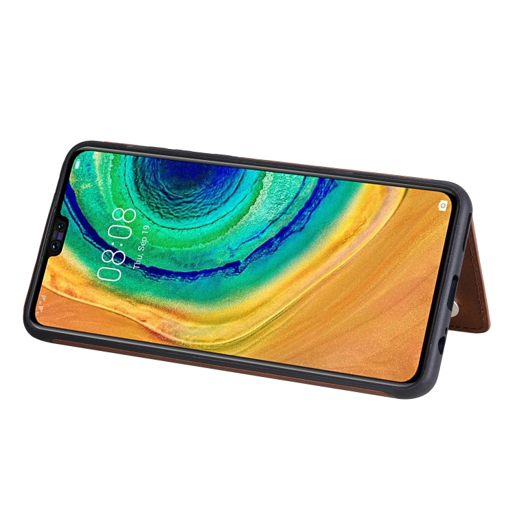 Para Huawei Mate 30 Funda de cuero con tapa horizontal con textura de becerro con soporte, ranuras para tarjetas y marco (café)