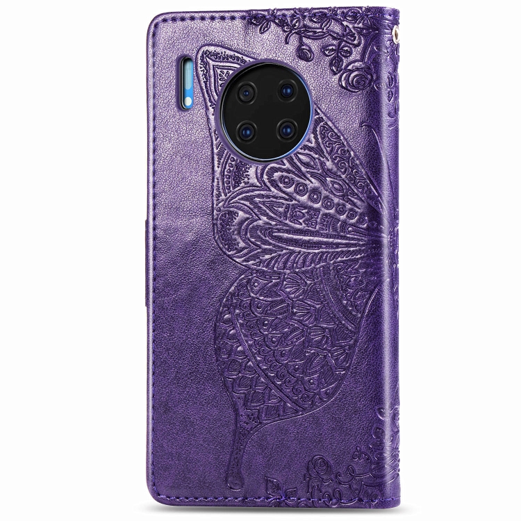 Funda de Cuero Huawei Mate 30 Pro Butterfly Love Flower con Tapa Horizontal Soporte Ranura Tarjeta Billetera Cordón (Púrpura Oscuro)