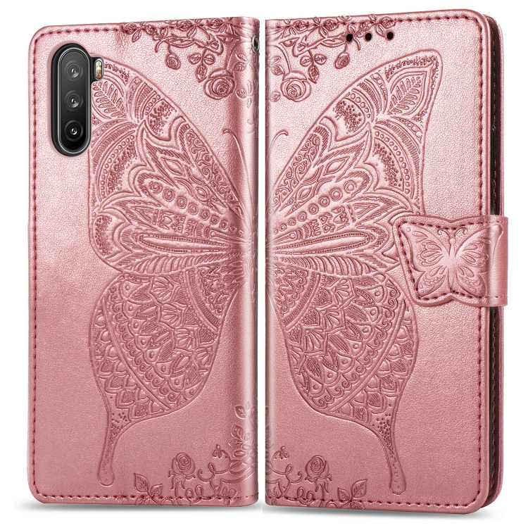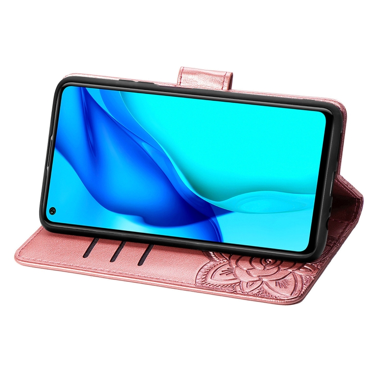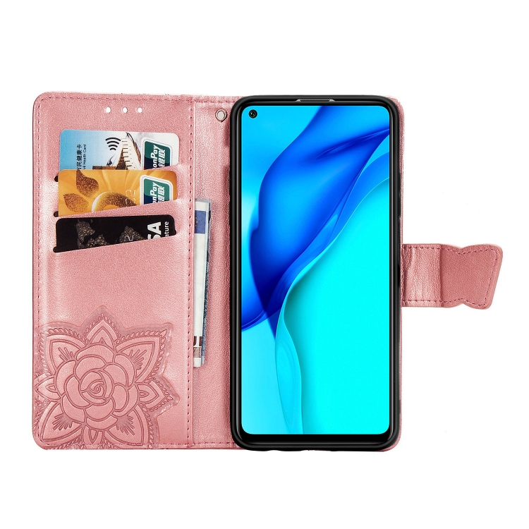 Para Huawei Mate 40 Lite / Maimang 9 Butterfly Love Flower Funda de cuero con tapa horizontal en relieve con soporte, ranuras para tarjetas, billetera y cordón (oro rosa)