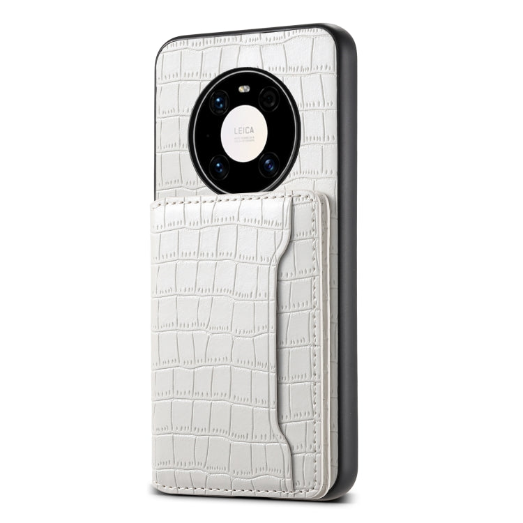 Funda para Huawei Mate 40 Pro con Diseño de Bolsa para Tarjetas y Textura de Cocodrilo (Blanco)
