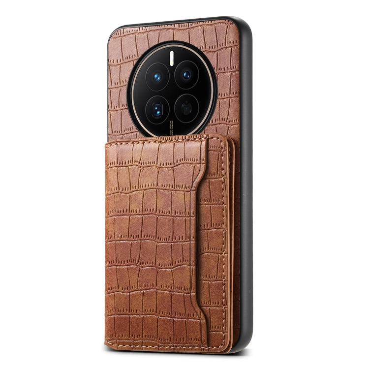 Funda para Huawei Mate 50 con Diseño de Bolsa para Tarjetas y Textura de Cocodrilo (Marrón)