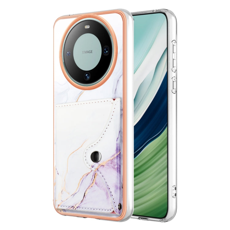 Estuche para Huawei Mate 60 con Ranura para Tarjeta IMD y Patrón de Mármol (Blanco y Morado)