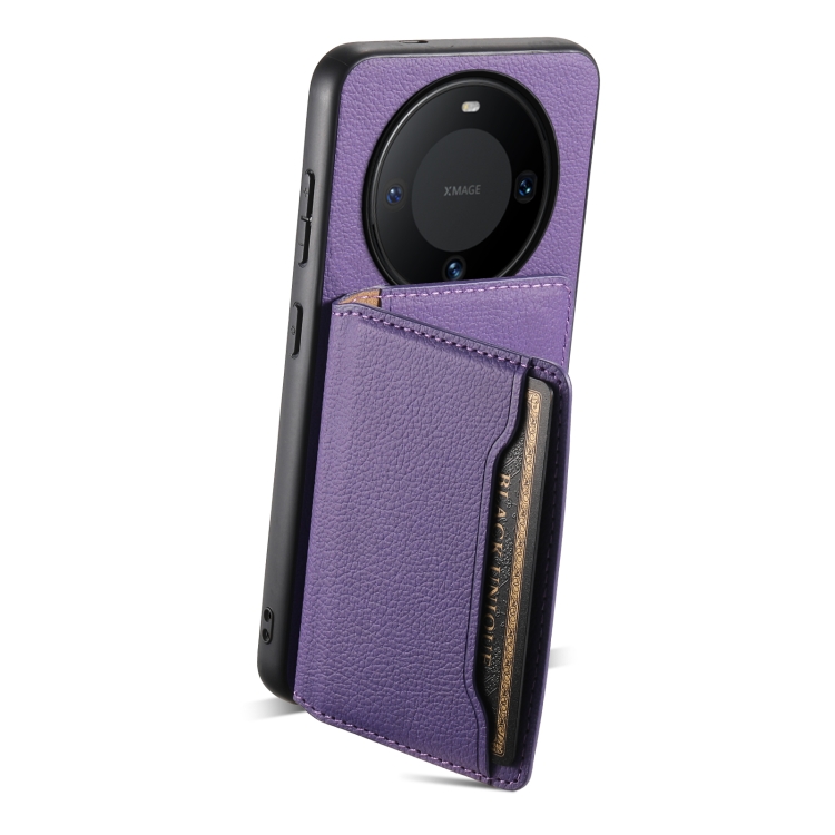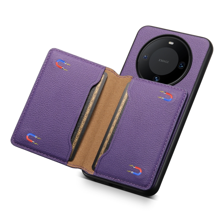 Funda para Huawei Mate 60 con Diseño de Bolsa para Tarjetas y Textura de Pantorrilla (Púrpura)